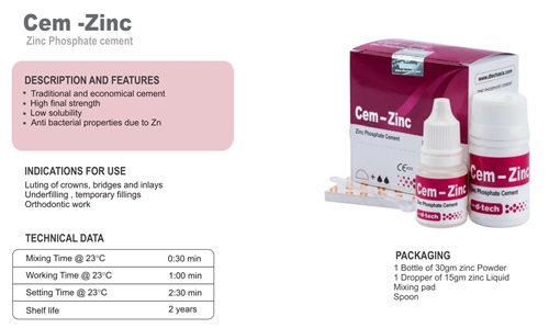 is used for cementation of inlays, crowns, bridges, and orthodontic appliances and occasionally as a temporary restoration.