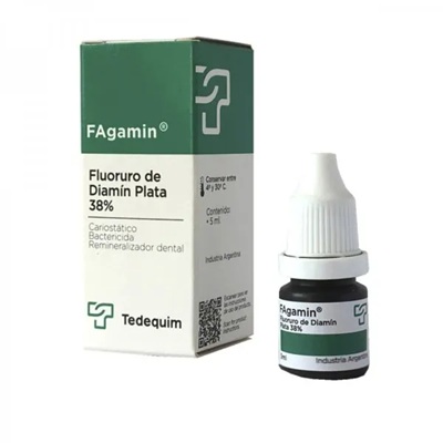 FAgamin is a 38% Silver Diamine Fluoride (SDF) solution that acts as a powerful cariostatic agent, caries inhibitor, remineralize, bactericide with anti-enzymatic action, protein-coagulant, and desensitizer.
