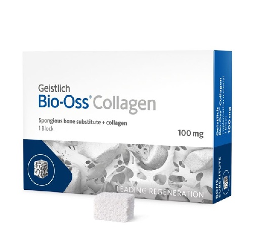 is a premium bone substitute composed of 90% Geistlich Bio-Oss granules and 10% porcine collagen. This unique combination enhances handling characteristics, making it formable and easy to apply to various defect sites. It is indicated for multiple applications, including ridge preservation, minor bone augmentation, and periodontal regeneration. The collagen component is absorbed within weeks, providing a scaffold for new bone formation without replacing the barrier function of membranes. Geistlich Bio-Oss Collagen promotes effective bone healing and regeneration, ensuring predictable outcomes in dental procedures while maintaining long-term volume preservation and improved clinical attachment levels.