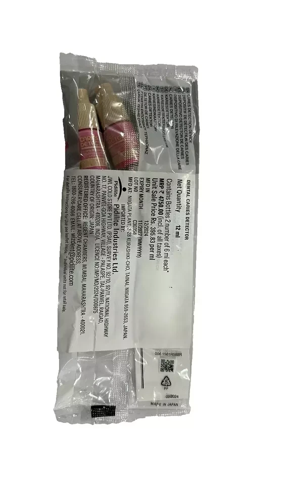 CARIES DETECTOR is an excellent caries disclosing agent for conservative dentistry. It aids in the excavation of the outer decalcified and infected carious dentine layer, permitting optimal caries removal. It also helps minimize the removal of remineralized, healthy dentin, protecting the vitality of the pulp and, as a resut, conserve the maximal amount of healthy tisssue.