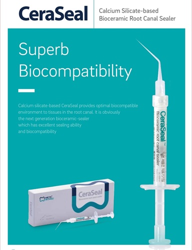 is used for root canal filling after the removal of infected pulp tissue in the root canal. CeraSeal is in the form of a flowable paste and can be immediately inserted into the root canal using a disposable tip. This product characteristically cures slowly by absorbing the ambient water inside the root canal. It is white and