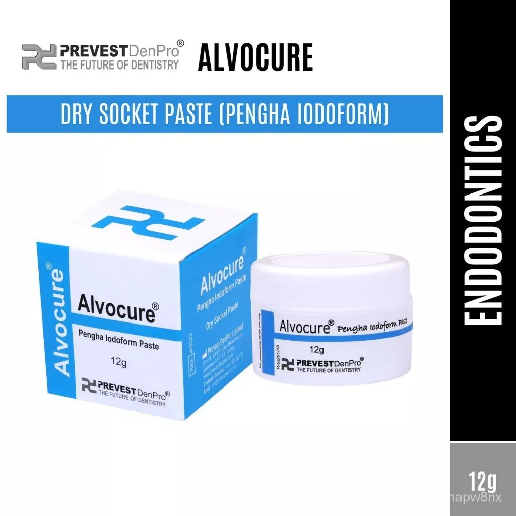 is a dry socket treatment and post extraction dressing. It provides a soothing effect throughout the healing process. Its fibrous consistency allows for easy filling of the socket. The active agents are eugenol, butamben and iodoform.