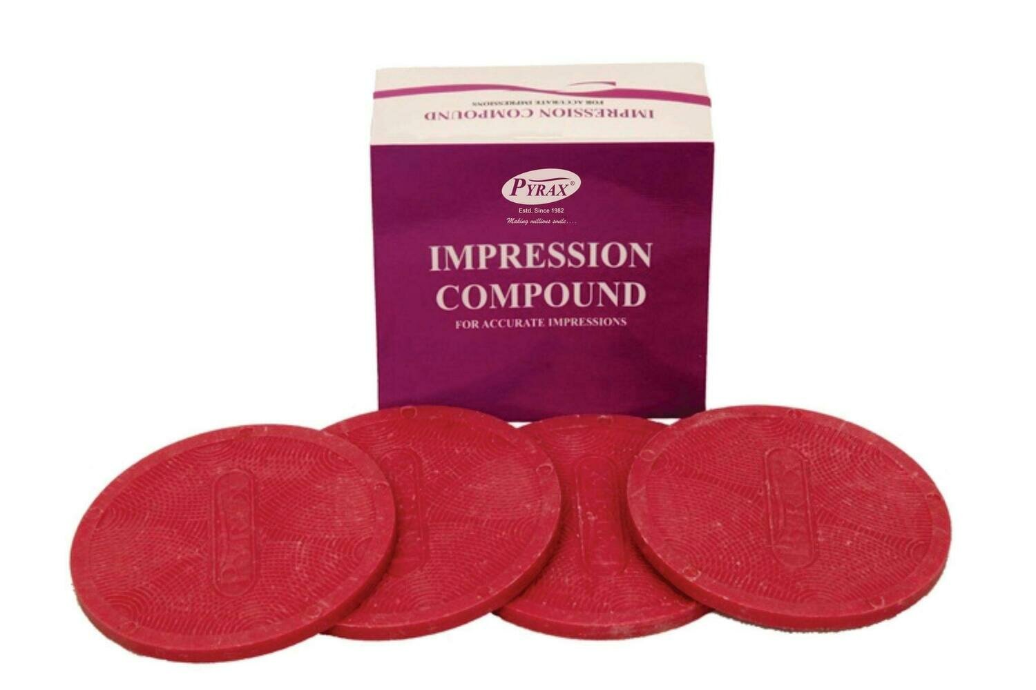 (Pack Of 5) is designed for accurate primary impressions, particularly in edentulous cases. It softens at 60°C, allowing for easy adaptation to the oral cavity, and becomes stable after cooling without shrinkage. The material is ideal for capturing detailed impressions of edentulous arches, ensuring precise results for complete denture prostheses. It can also be used with matrix bands for single-tooth impressions or for adding to the periphery of custom trays. Available in convenient round plates or sticks, it is easy to work with and offers controlled working temperatures for various applications. After use, the impression compound can be hardened by placing it in cold water. Impressions should be poured within an hour to avoid dimensional instability.