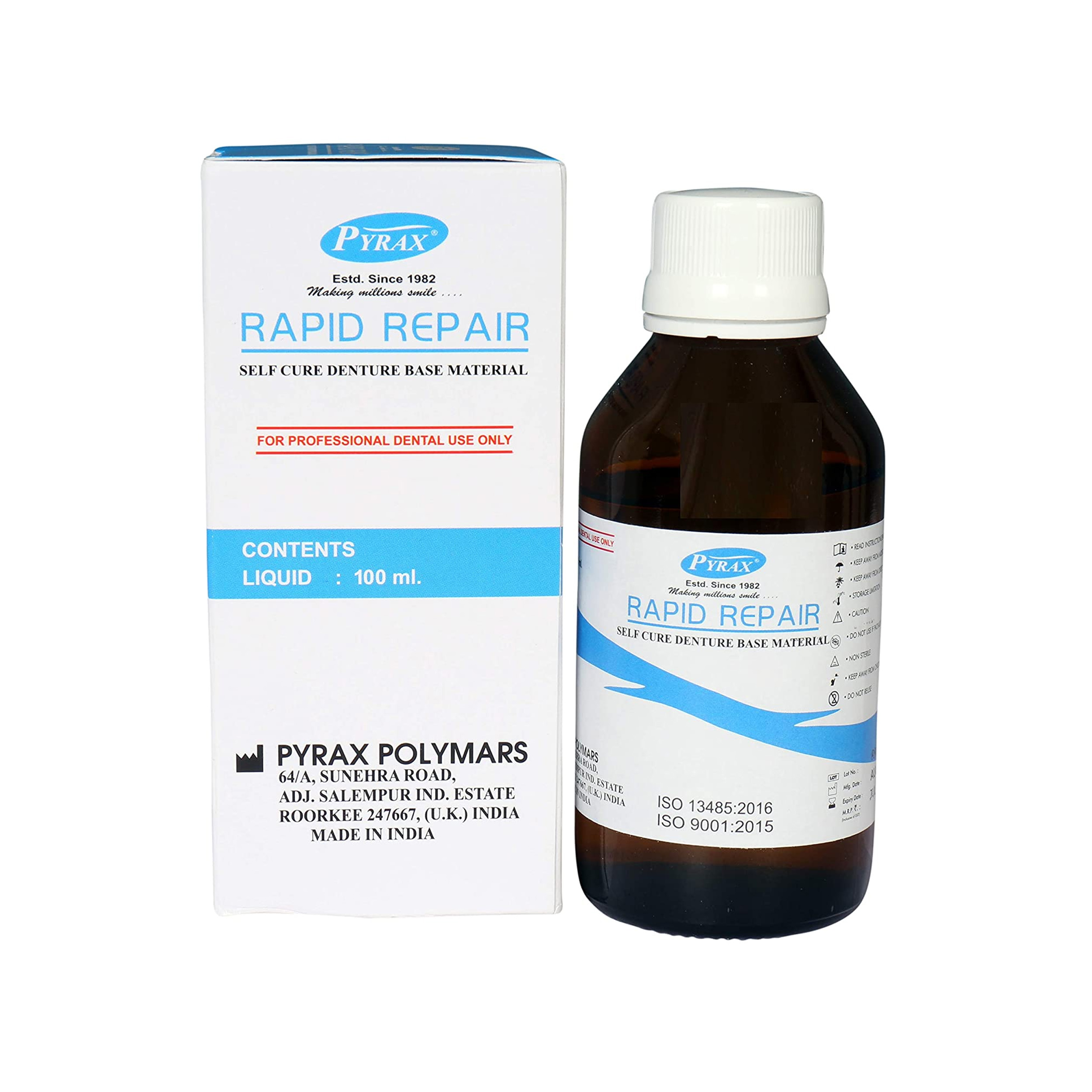 Be the first to review “Pyrax Rapid Repair Liquid 100 ml High Quality Denture Base Material”