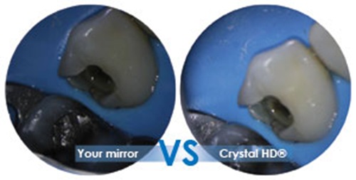 provide superior clarity and brightness, making them an essential tool for precision dental procedures. The Crystal HD mirror lens is 40% brighter than Rhodium-coated mirrors, offering enhanced visibility and reducing eye strain during prolonged use. This advanced optical technology allows for improved color accuracy and sharpness, ensuring a clear and detailed view of the oral cavity.